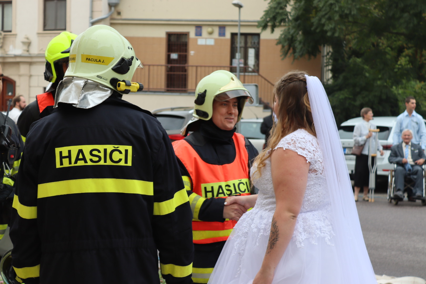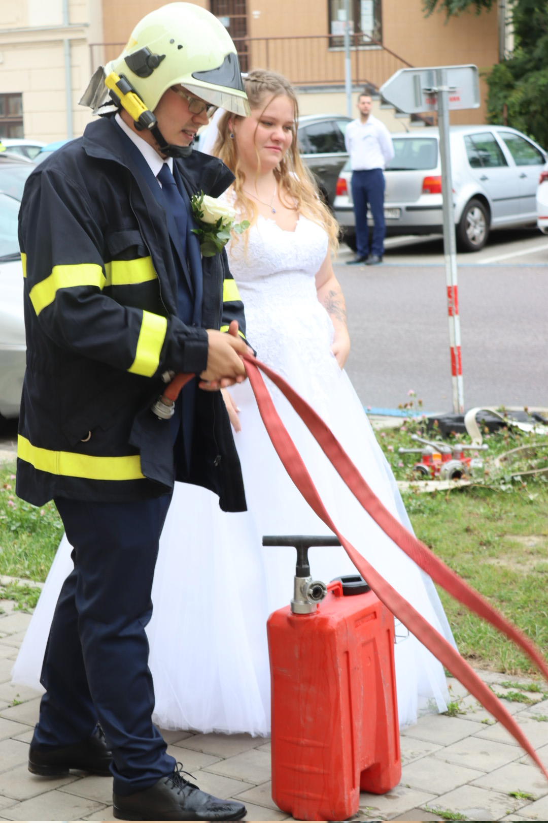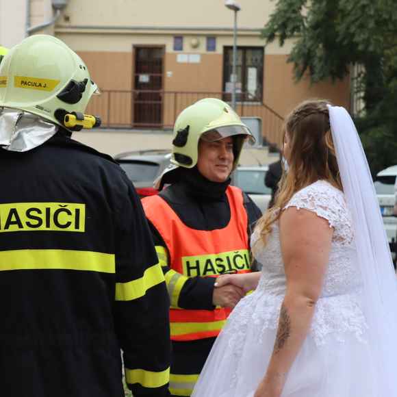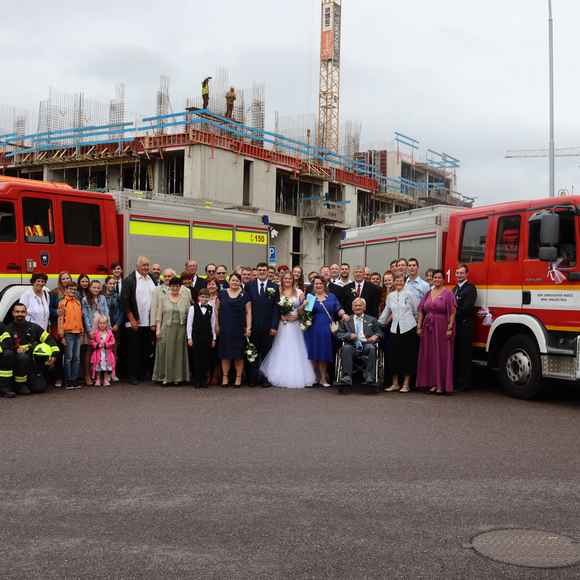 Naše CAS 24 MAN (přezdívaná "Manny") se tentokrát neoblékla do zásahových barev pro požár, ale stala se stylovým svatebním doprovodem a fotomomentem pro novomanžele. Vypadala fantasticky a určitě přispěla k nezapomenutelné atmosféře.